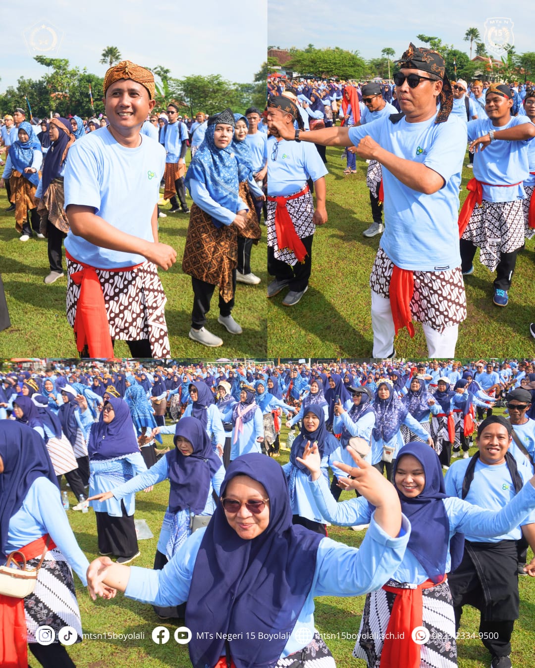 Dalam perhelatan akbar ini, MTsN 15 Boyolali menunjukkan dedikasi yang luar biasa. Seluruh keluarga besar madrasah, mulai dari jajaran pimpinan, guru, hingga staf tata usaha, tumpah ruah menjadi satu dalam barisan penari. Kekompakan tim MTsN 15 Boyolali juga menjadi salah satu motor penggerak kesuksesan di lapangan.