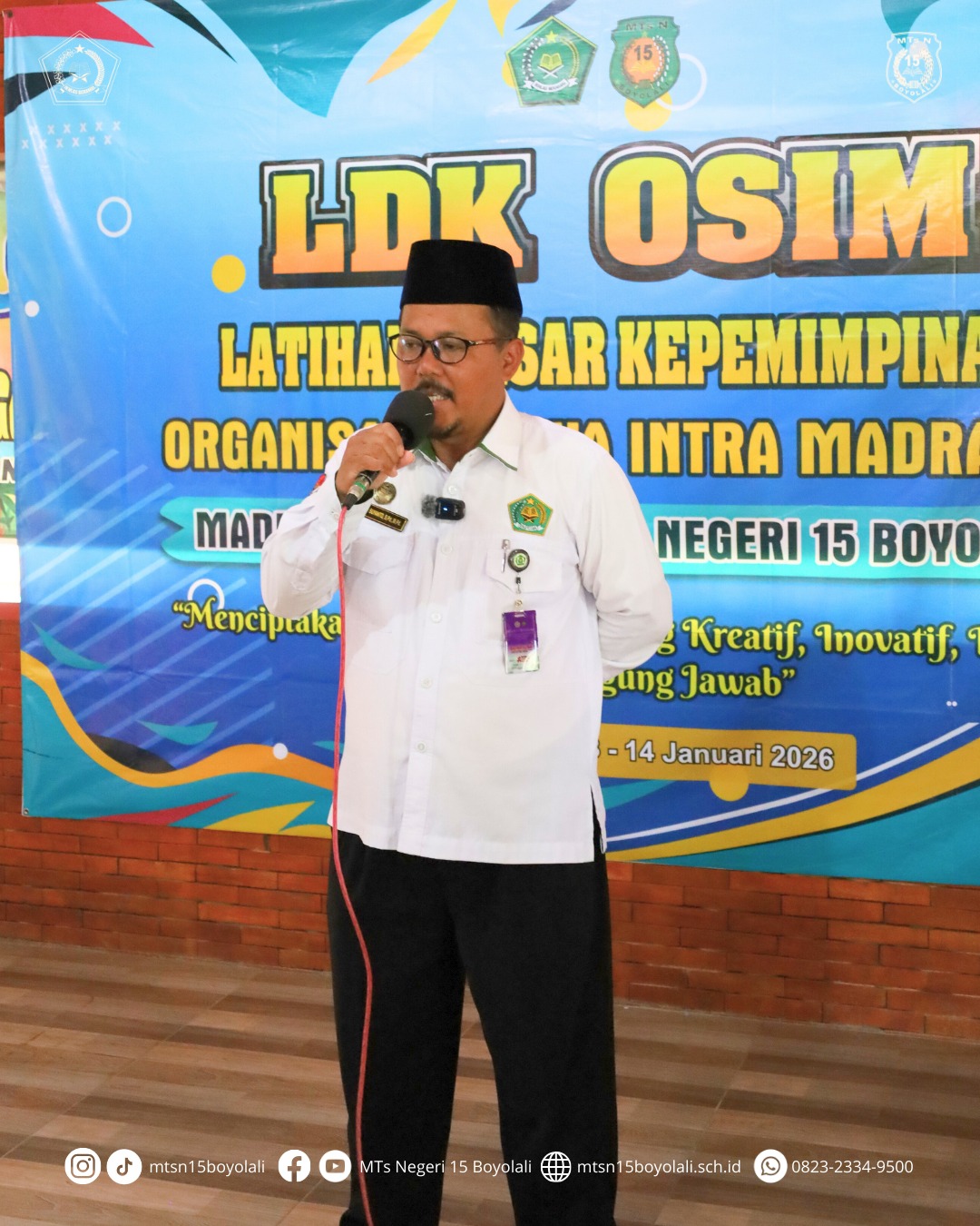 Acara dibuka langsung oleh Kepala MTsN 15 Boyolali, Suyanto, S.Pd., M.Pd. Dalam sambutannya, beliau menekankan pentingnya menikmati setiap proses belajar dalam organisasi.